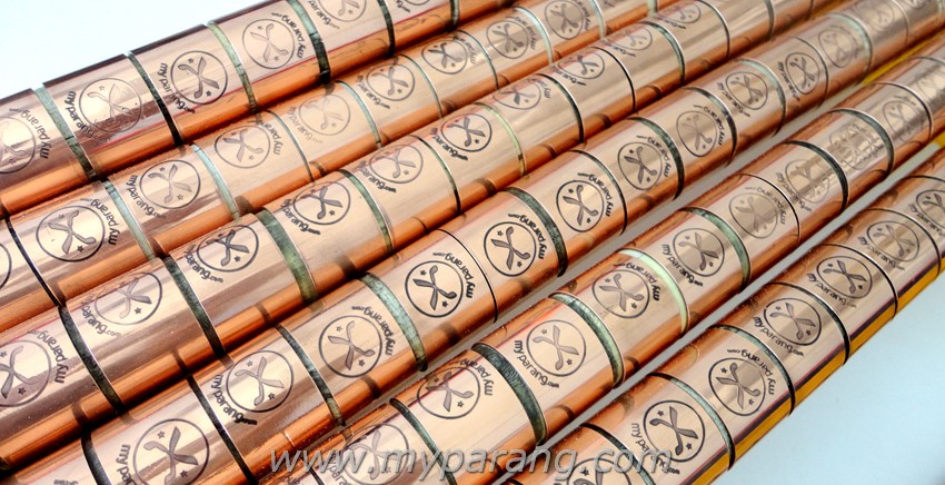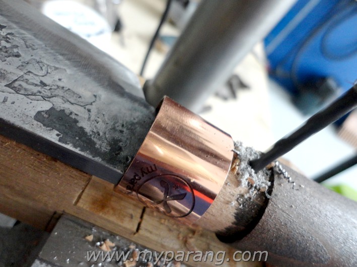 We have finally started assembling the parangs after much delay. The delays are not much due to components or manpower, but mostly due to some fine tuning of the process. The colour for the parang handles needed to be consistent – so we had to make up some colour samples, the copper rings needed polishing , and not to mention the creation of many jigs that is very much needed. Sometimes we need to think, make and rethink again a few of the jigs so they work better and give better consistent results. These all take time, but it is very well spent. We’d rather spend time now to make things right rather than keep spending time reworking as we go.